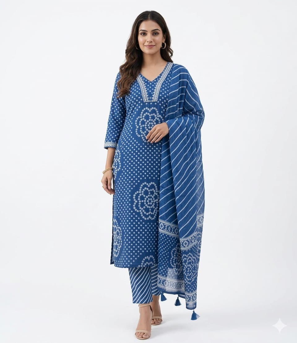 Bandhej Print Kurta Set with Dupatta