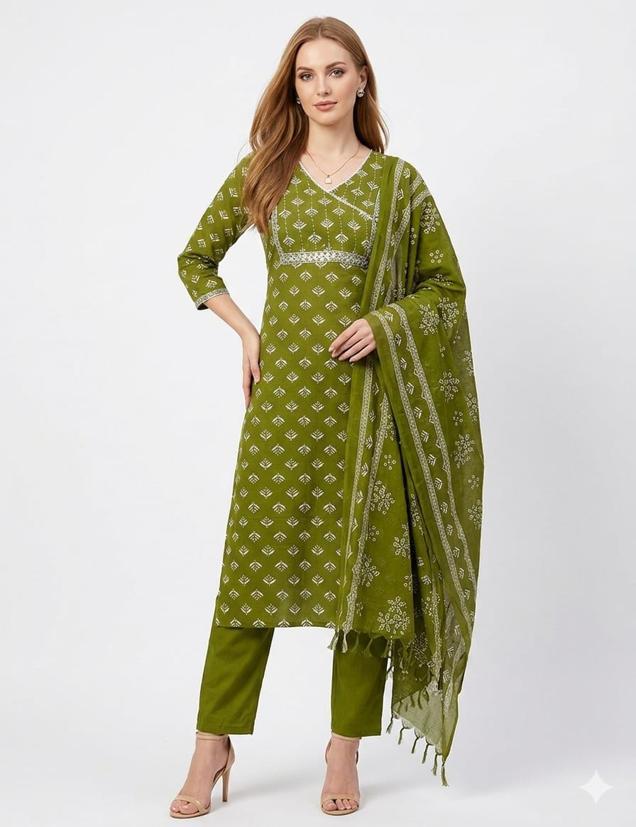 Plus Size Mehendi Green Kurta Set with Dupatta