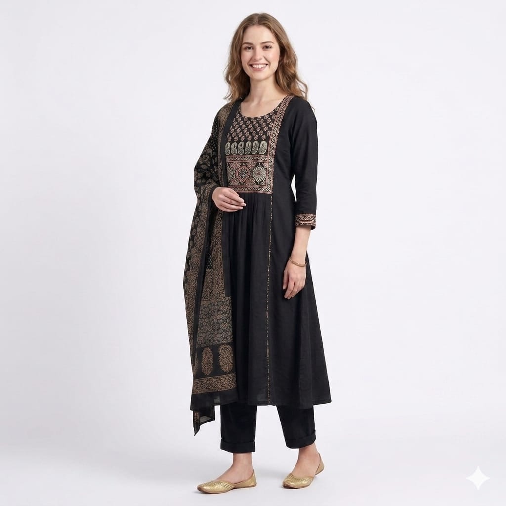 Ajrakh Anarkali Dress Set