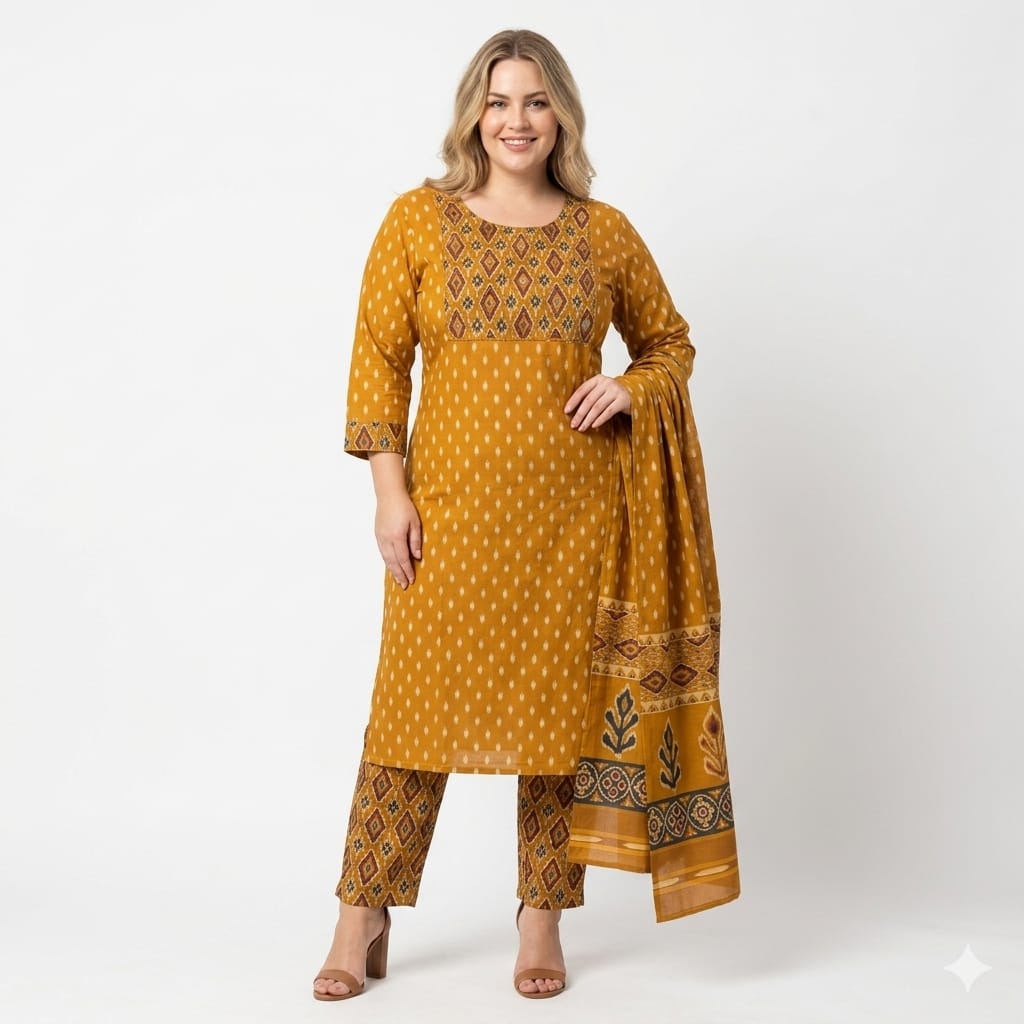 Plus size Batik Kurta Set with Dupatta